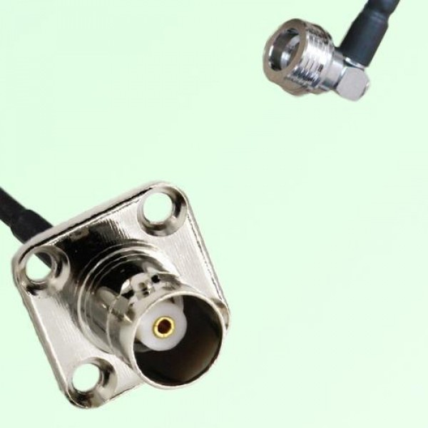 Low loss cable assembly, one side BNC Female 4 Hole Panel Mount connector, the other side QN Male Right Angle connector, RG316 / RG316D / LMR195 optional.