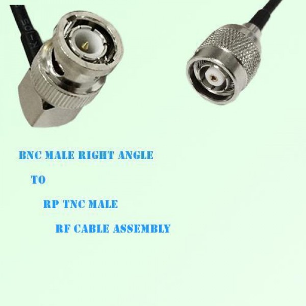 Low loss cable assembly, one side BNC Male Right Angle connector, the other side RP TNC Male Straight connector, 50 Ohm, RG316 / RG316D / RG174 / LMR100 / RG58 / LMR195 / LMR200 / RG223 / RG142 optional.