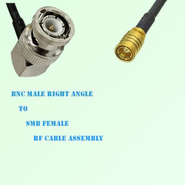 Low loss cable assembly, one side BNC Male Right Angle connector, the other side SMB Standard Female Straight connector, 50 Ohm, RG178 / RG316 / RG316D / RG174 / LMR100 optional.