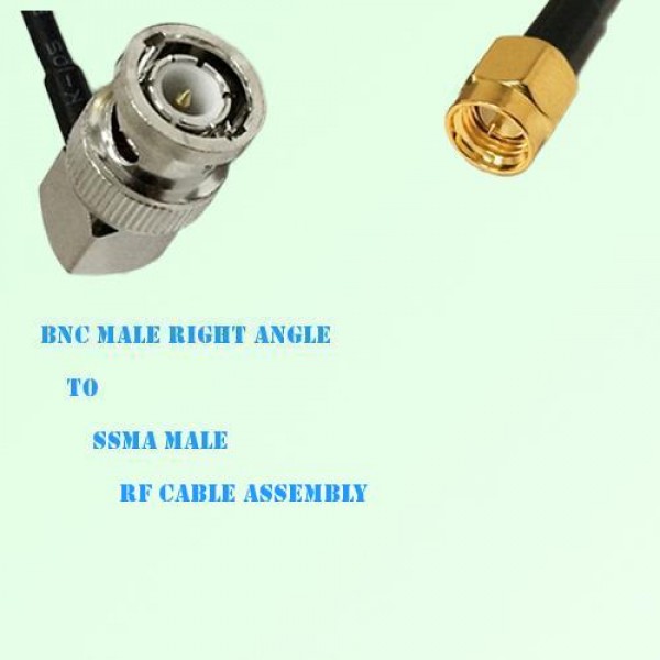 Low loss cable assembly, one side BNC Male Right Angle connector, the other side SSMA Male Straight connector, 50 Ohm, RG316 / RG316D / RG174 optional.