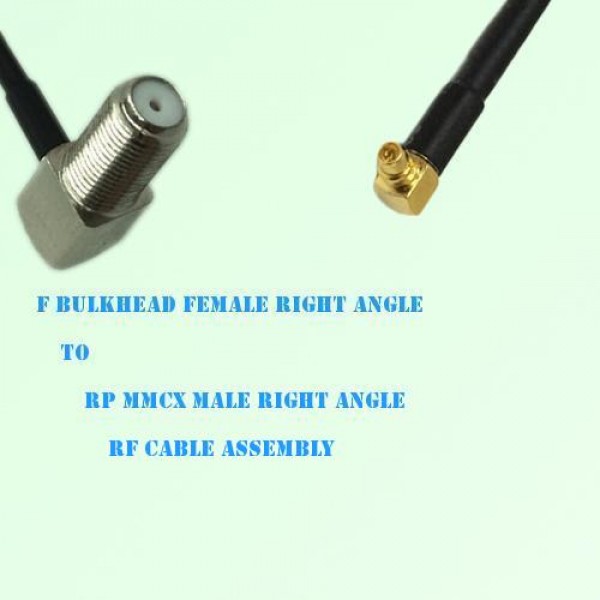 Low loss cable assembly, one side F Bulkhead Female Right Angle connector, the other side RP MMCX Male Right Angle connector, 50 Ohm, RG316 / RG316D / RG174 / LMR100 optional.