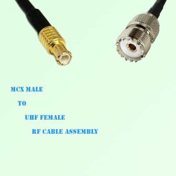 Low loss cable assembly, one side MCX Male Straight connector, the other side UHF Standard Female Straight connector, 50 Ohm, RG316 / RG316D / RG174 optional.