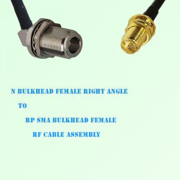 Low loss cable assembly, one side N Bulkhead Female Right Angle connector, the other side RP SMA Bulkhead Female Straight connector, 50 Ohm, RG316 / RG316D / RG174 / RG178 / LMR100 optional.