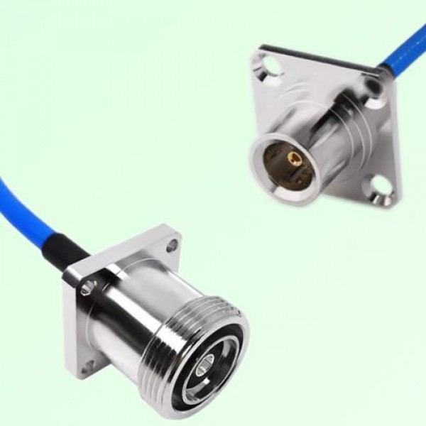 Low Loss 50Ω Semi-Flexible Cable Assembly, One Side QN Female 4 Hole Flange Mount 25x25mm, The Other Side 7 / 16 DIN Female 4 Hole Flange Mount, RG402 / .141 Optional.