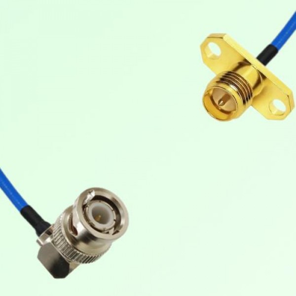 Low Loss 50Ω Semi-Flexible Cable Assembly, One Side RP SMA Female 2 Hole Flange Mount, The Other Side BNC Male Right Angle, RG405 / .086, RG402 / .141 Optional.