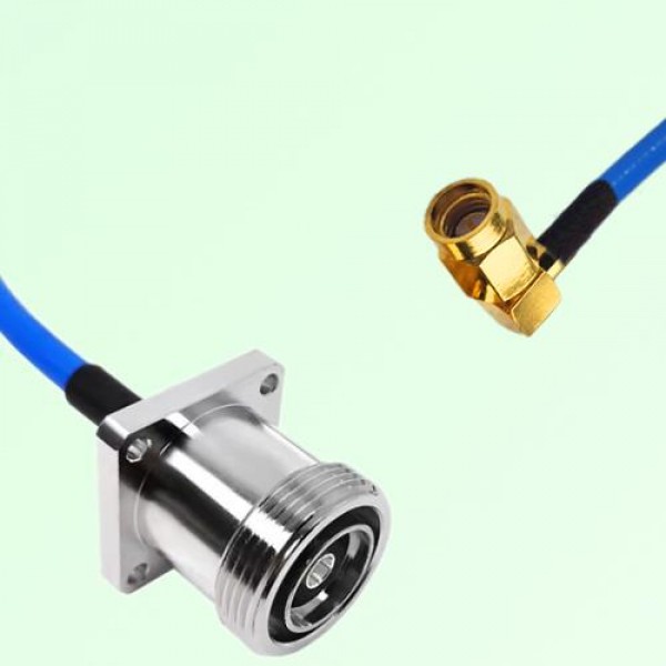Low Loss 50Ω Semi-Flexible Cable Assembly, One Side SSMA Male Right Angle, The Other Side 7 / 16 DIN Female 4 Hole Flange Mount, RG402 / .141 Optional.