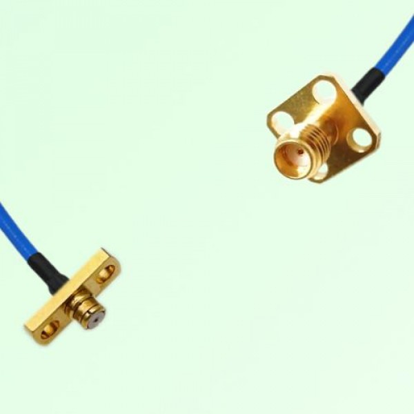 Low Loss 50Ω Semi-Flexible Cable Assembly, One Side SSMA Female 4 Hole Flange Mount 12.7x12.7mm, The Other Side SMP Female 2 Hole Flange Mount, RG405 / .086 Optional.