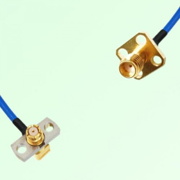 Low Loss 50Ω Semi-Flexible Cable Assembly, One Side SSMA Female 4 Hole Flange Mount 12.7x12.7mm, The Other Side SMP Female Right Angle 2 Hole Flange Mount, RG405 / .086 Optional.