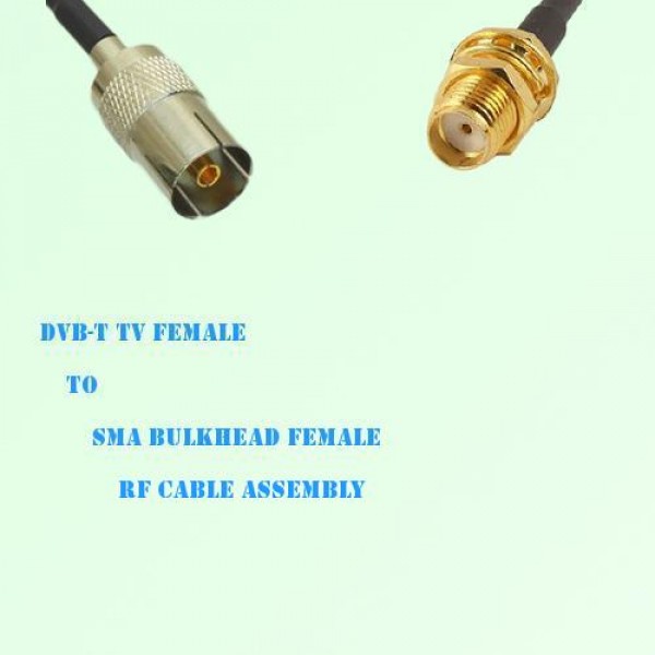 Low loss cable assembly, one side DVB-T TV Standard Female Straight connector, the other side SMA Bulkhead Female Straight connector, 50 Ohm, RG316 / RG174 optional.