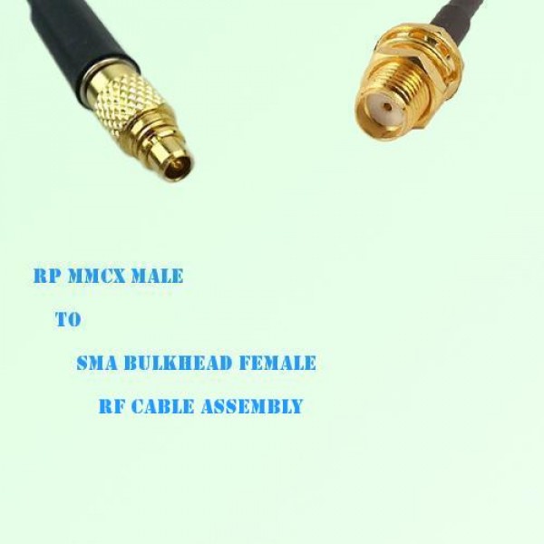 Low loss cable assembly, one side RP MMCX Male Straight connector, the other side SMA Bulkhead Female Straight connector, 50 Ohm, RG174 / RG316 / RG316D / LMR100 optional.