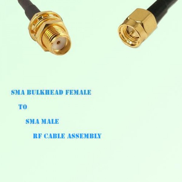 Low loss cable assembly, one side SMA Bulkhead Female Straight connector, the other side SMA Male Straight connector, 50 Ohm, RG178 / RG316 / RG316D / RG174 / LMR100 / RG58 / LMR195 / LMR200 / RG223 / RG142 / 1.13 / 1.37 optional.