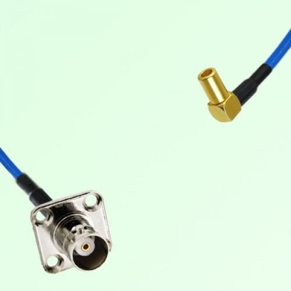 Low Loss 50Ω Semi-Flexible Cable Assembly, One Side SSMB Female Right Angle, The Other Side BNC Female 4 Hole Flange Mount 17.5x17.5mm, RG405 / .086 Optional.