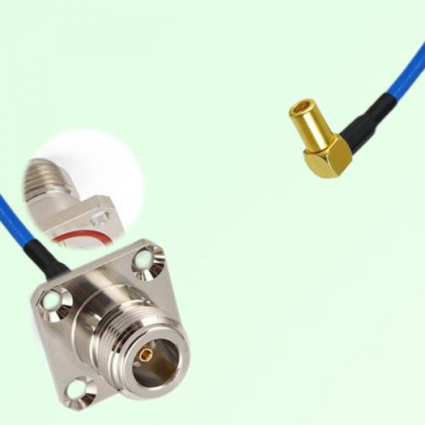 Low Loss 50Ω Semi-Flexible Cable Assembly, One Side SSMB Female Right Angle, The Other Side N Female 4 Hole Flange Mount with O-Ring 25x25mm, RG405 / .086 Optional.