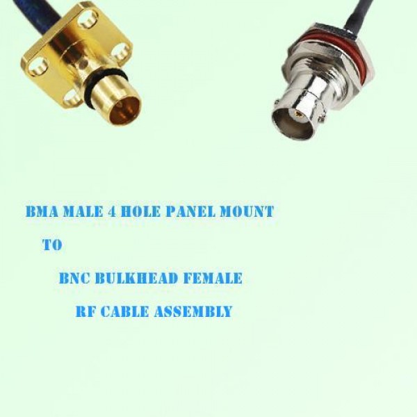 Low loss cable assembly, one side BMA Male 4 Hole Panel Mount Straight connector, the other side BNC Bulkhead Female Straight connector, 50 Ohm, RG178 / RG316 / RG316D / RG174 / LMR100 optional.