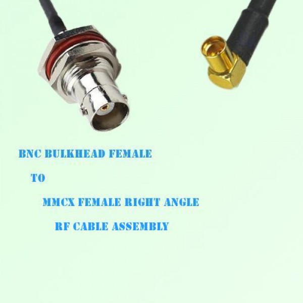Low loss cable assembly, one side BNC Bulkhead Female Straight connector, the other side MMCX Female Right Angle connector, 50 Ohm, RG178 / RG316 / RG316D / RG174 / LMR100 / 1.13 / 1.37 optional.