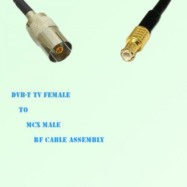 Low loss cable assembly, one side DVB-T TV Standard Female Straight connector, the other side MCX Male Straight connector, 50 Ohm, RG316 / RG174 optional.