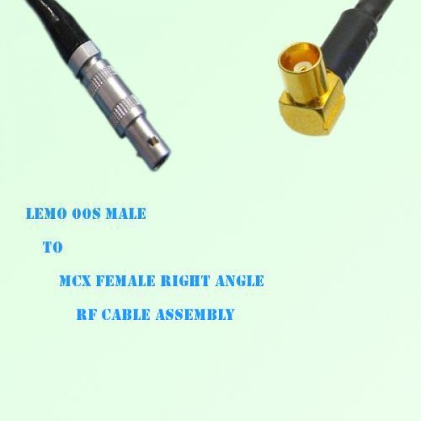 Low loss cable assembly, one side Lemo FFA 00S Male Straight connector, the other side MCX Female Right Angle connector, 50 Ohm, RG316 / RG316D / RG174 optional.