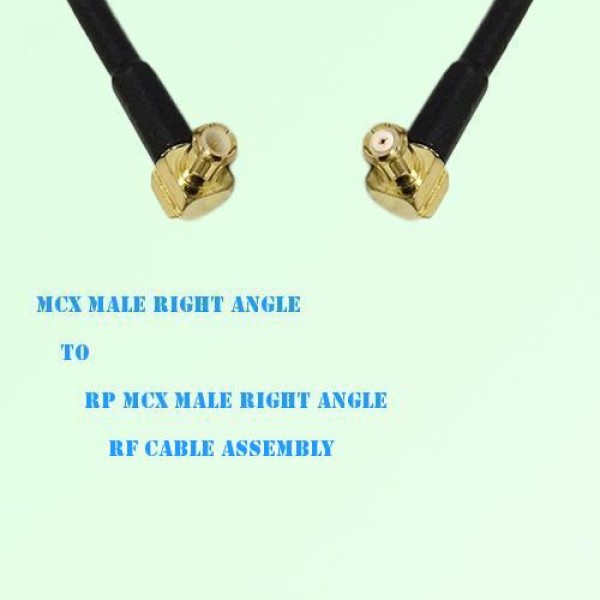 Low loss cable assembly, one side MCX Male Right Angle connector, the other side RP MCX Male Right Angle connector, 50 Ohm, RG316 / RG316D / RG174 / LMR100 optional.