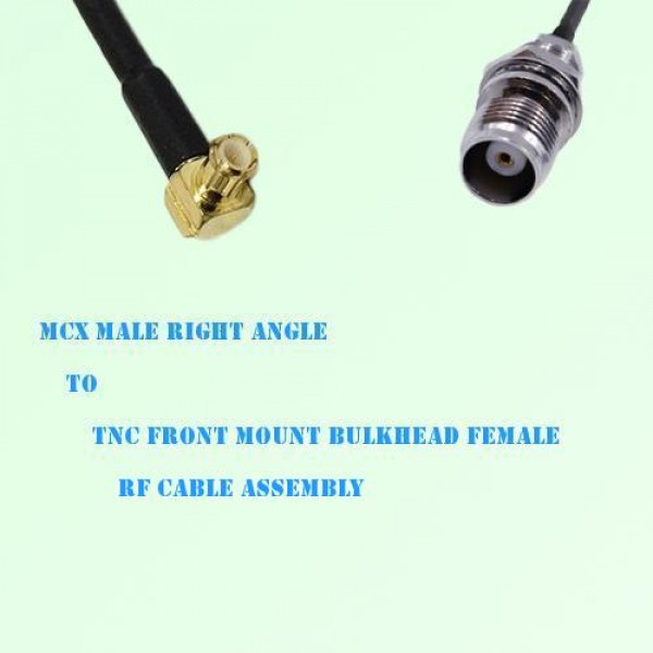 Low loss cable assembly, one side MCX Male Right Angle connector, the other side TNC Front Mount Bulkhead Female Straight connector, 50 Ohm, 1.13 / 1.37 / RG178 / RG316 / RG316D / RG174 / LMR100 optional.