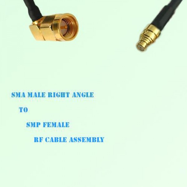 Low loss cable assembly, one side SMA Male Right Angle connector, the other side SMP Standard Female Straight connector, 50 Ohm, RG316 / RG316D / RG174 optional.