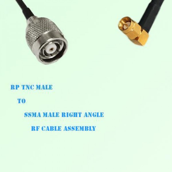 Low loss cable assembly, one side RP TNC Male Straight connector, the other side SSMA Male Right Angle connector, 50 Ohm, RG316 / RG316D / RG174 optional.
