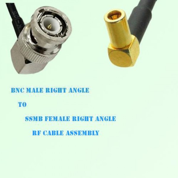 Low loss cable assembly, one side BNC Male Right Angle connector, the other side SSMB Female Right Angle connector, 50 Ohm, RG316 / RG316D / RG174 optional.