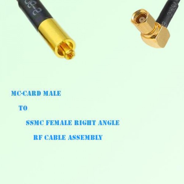 Low loss cable assembly, one side MC-Card Male Straight connector, the other side SSMC Female Right Angle connector, 50 Ohm, RG316 / RG316D / RG174 optional.