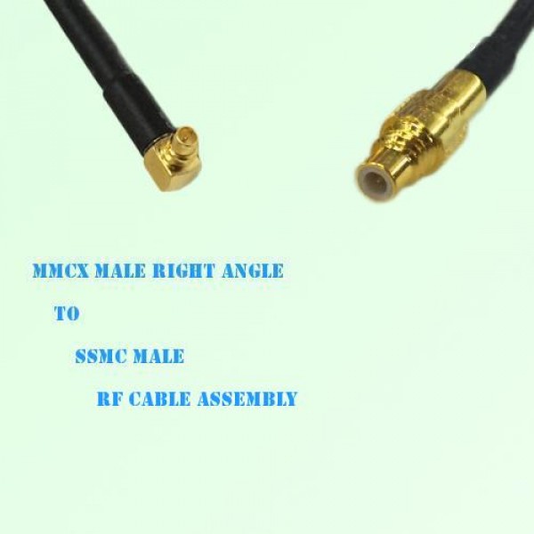 Low loss cable assembly, one side MMCX Male Right Angle connector, the other side SSMC Male Straight connector, 50 Ohm, RG316 / RG316D / RG174 optional.