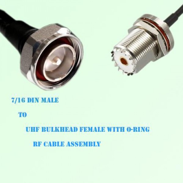 Low Loss Cable Assembly, One Side 7 / 16 DIN Male, The Other Side UHF Bulkhead Female with O-Ring, 50Ω, RG58, RG142, RG223, RG400, LMR195, LMR300, RG303 Optional.