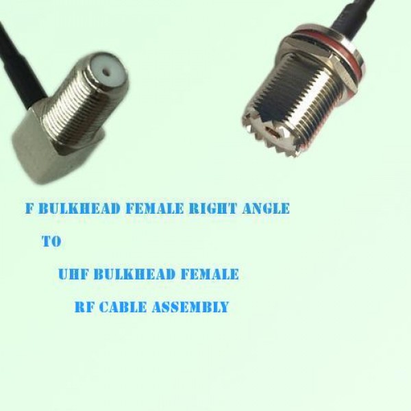 Low loss cable assembly, one side F Bulkhead Female Right Angle connector, the other side UHF Bulkhead Female Straight connector, 50 Ohm, RG316 / RG316D / RG174 / LMR100 optional.