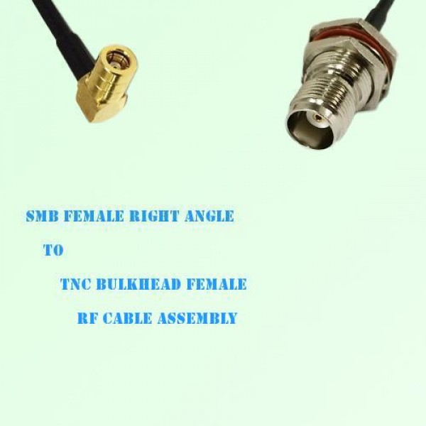 Low loss cable assembly, one side SMB Female Right Angle connector, the other side TNC Bulkhead Female Straight connector, 50 Ohm, RG316 / RG316D / RG174 / LMR100 optional.