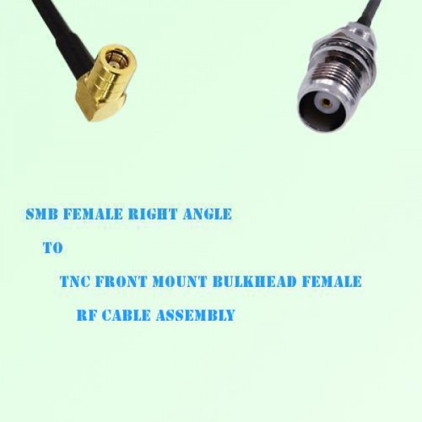 Low loss cable assembly, one side SMB Female Right Angle connector, the other side TNC Front Mount Bulkhead Female Straight connector, 50 Ohm, RG178 / RG316 / RG316D / RG174 / LMR100 optional.