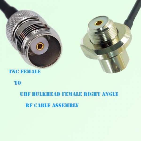Low loss cable assembly, one side TNC Standard Female Straight connector, the other side UHF Bulkhead Female Right Angle connector, 50 Ohm, RG316 / RG316D / RG174 / LMR100 optional.