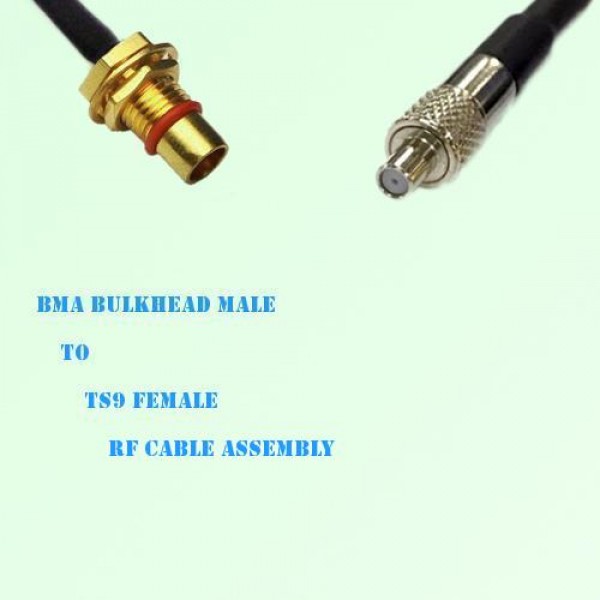 Low loss cable assembly, one side BMA Bulkhead Male Straight connector, the other side TS9 Standard Female Straight connector, 50 Ohm, RG316 / RG316D / RG174 / LMR100 optional.