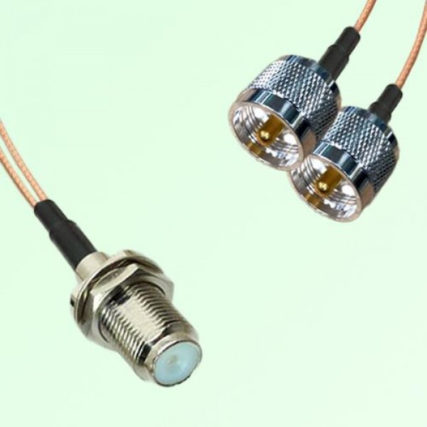 1x F Bulkhead Female to 2x UHF Male Splitter / Combiner / Y Type RF Cable Assembly.